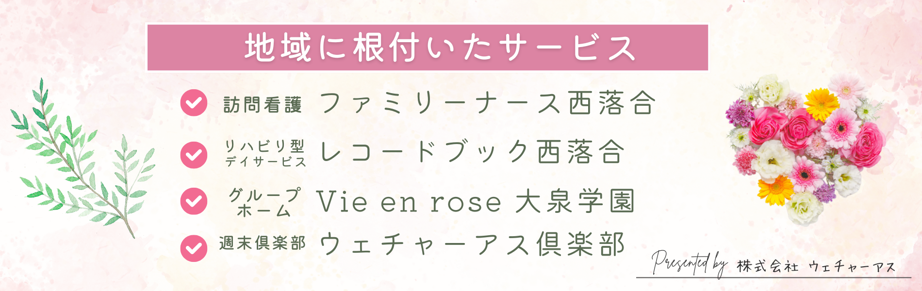 の3つを基盤として、高齢者の集まる楽しい場所になりつつあります - 素晴らしい仲間と力を合わせて、利他の会社理念でより多くの方に自然に笑顔があふれるようにと